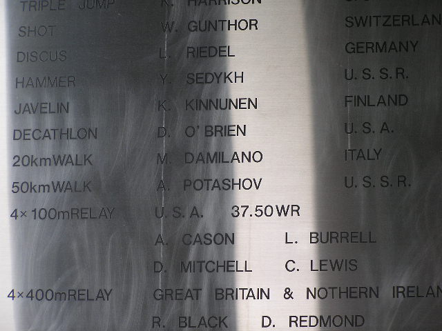 そして日本の谷口浩美選手(男子マラソン)。当時一時代を築いた英雄たちの名が刻まれている。